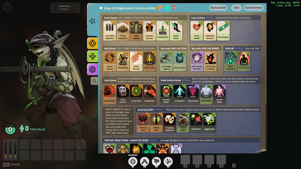 Ivy is considered one of the most versatile heroes in the game, capable of being built out for her gun, her mobility, her support abilities, or her combat abilities. Healing Rite is probably my favorite item in the game, it’s essentially a dirt-cheap syringe that heals her for a nice chunk of HP over a few seconds. The healing can be cancelled by taking enemy fire, so treat it as an out-of-combat heal, but I find it very useful for topping up myself or a teammate (or both, with Kudzu Connection!) to maintain my tempo and use that time I saved to farm more minions/creeps and get those 500 souls back with interest. Overall it adds just that little bit of extra healing to strike the balance I like in my gun/healing hybrid build, and as I get better at the game I like knowing I’ll be able to start experimenting with alternate Ivy setups thanks to her commendable flexibility.